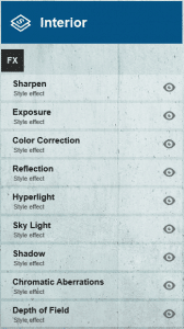 Para el render interior de este post, puedes ver un listado de efectos a la izquierda de tu pantalla, incluyendo: