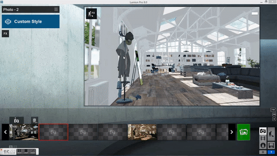 Pero como el “menos es más” de Mies van der Rohe, quisimos concentrar todo el poder de Lumion 8 en una sola función, el botón Estilos.