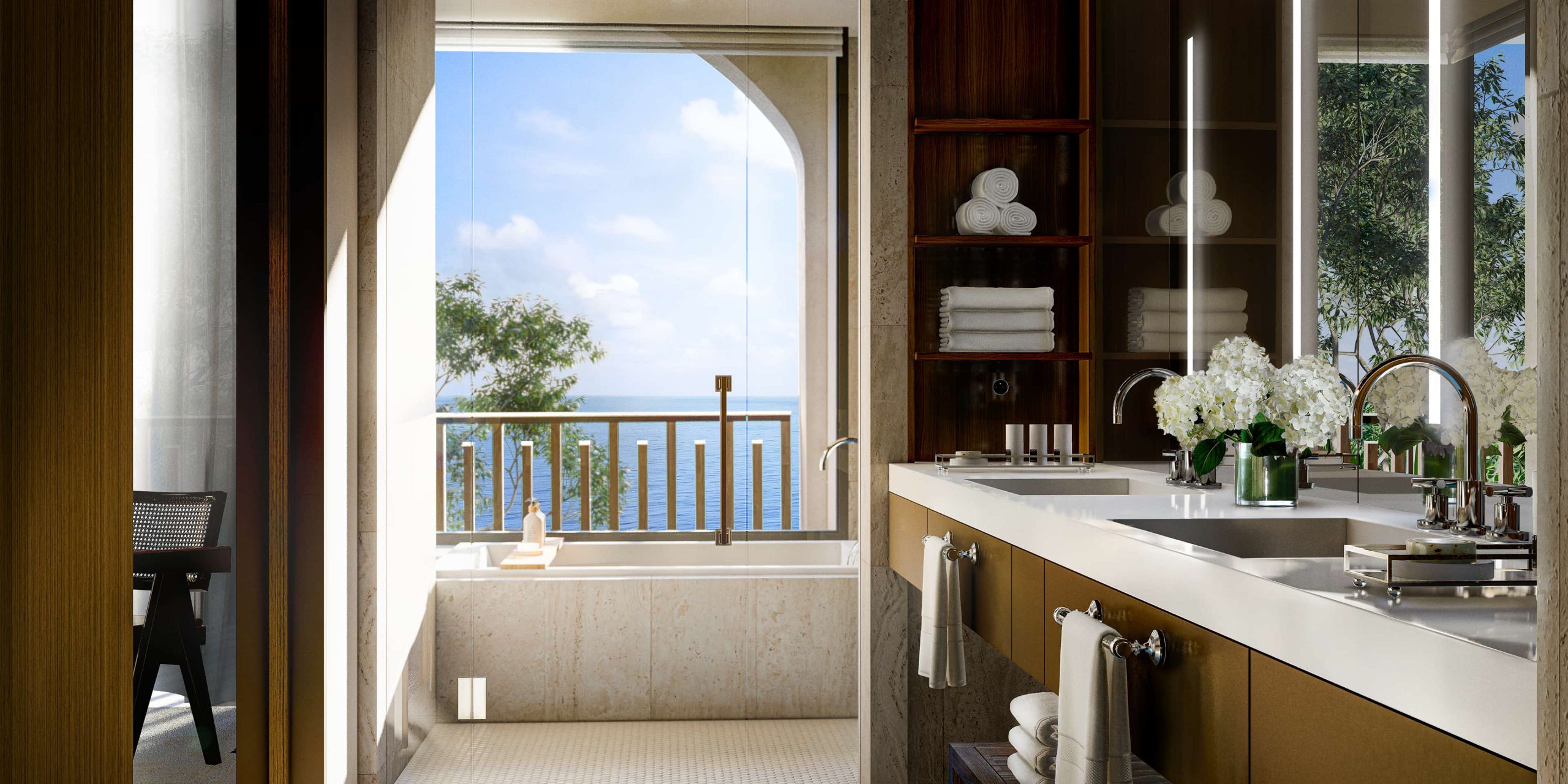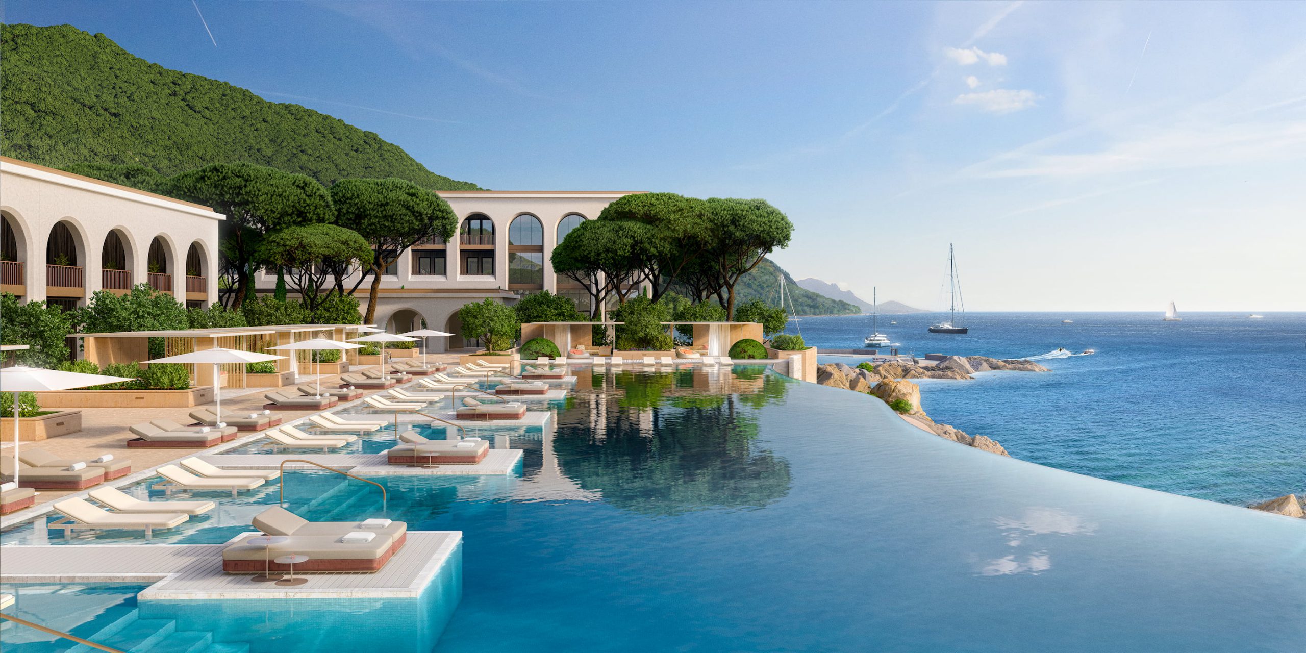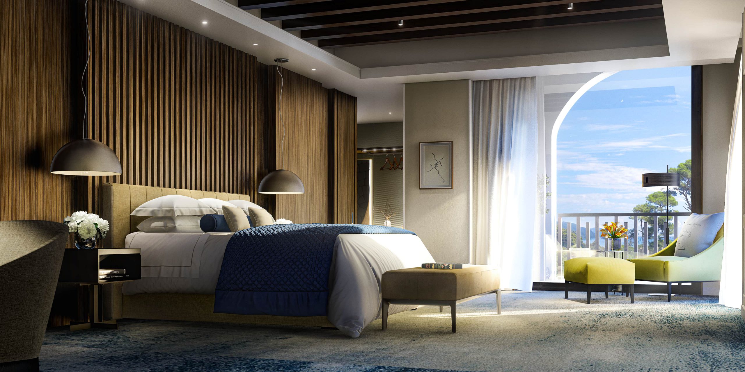 Vista desde una suite, Hotel Le Mas. Renderizado en Lumion por Ten Over Media.