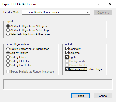 4. Vectorworks 2019 SP2 y más antiguo: Exportar un archivo Collada .DAE
