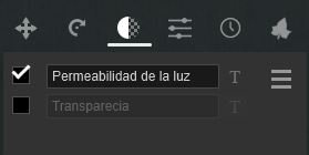 Ajustando este deslizador se puede cambiar la permeabilidad del material a la luz.