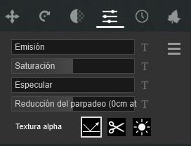 Igual que hemos visto en apartados anteriores, si existe una máscara de emisividad en el canal alfa del mapa de color, el deslizador de emisividad solo afectara a las áreas enmascaradas.