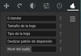 3.6.3. Tipo de hojas; El tipo de hojas así como su coloración y forma también admite ciertas variaciones, existen 9 tipos diferentes de hojas predefinidas y podemos pasar de unas a otras moviendo el deslizador.