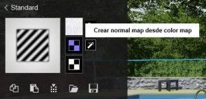 En esta casilla donde puedes añadir un mapa normal al material, estos mapas son una combinación de 3 tonos que colorean los planos según su inclinación, añaden profundidad y mejoran considerablemente la definición del material.