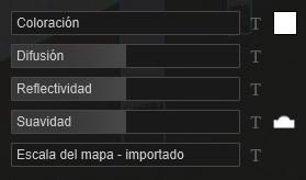 Si el material utiliza un Mapa de Desplazamiento, el deslizador modificará la intensidad del efecto 3D: A mayor valor de desplazamiento, mayor profundidad del relieve.