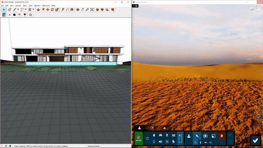 También puedes importar tu modelo 3D con LiveSync, lo que te permite modelar y renderizar simultáneamente. Actualmente, LiveSync en Lumion 9 sólo está disponible para Revit, SketchUp, ArchiCAD y Rhino. En el caso de Lake House, iniciamos LiveSync entre SketchUp y Lumion.