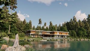 Recapitulemos. Hasta el momento, hemos utilizado LiveSync para importar el modelo 3D de la casa del lago. Después de añadir materiales y mientras revisamos el diseño, nos hemos dado cuenta de un error con el patio, y lo hemos solucionado. Lo siguiente, con la ayuda del flujo de trabajo optimizado y herramientas como Colocación en Masa y Colocación por grupos, hemos podido construir rápidamente una escena realista que refleja la localización real del proyecto.