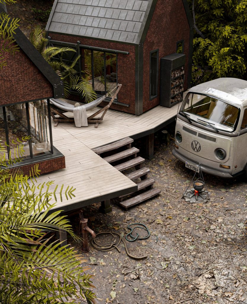 Cabaña en el bosque, renderizado por architectural visualization studio D.Wulf.