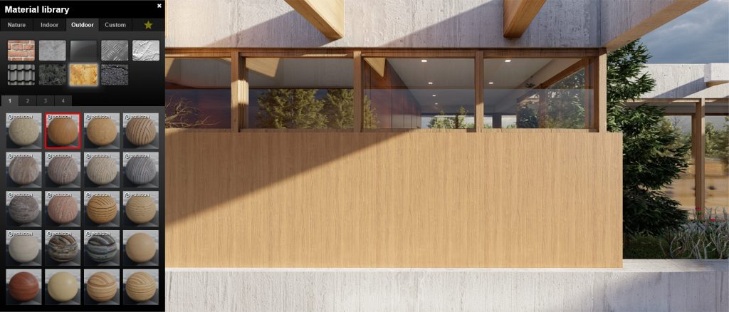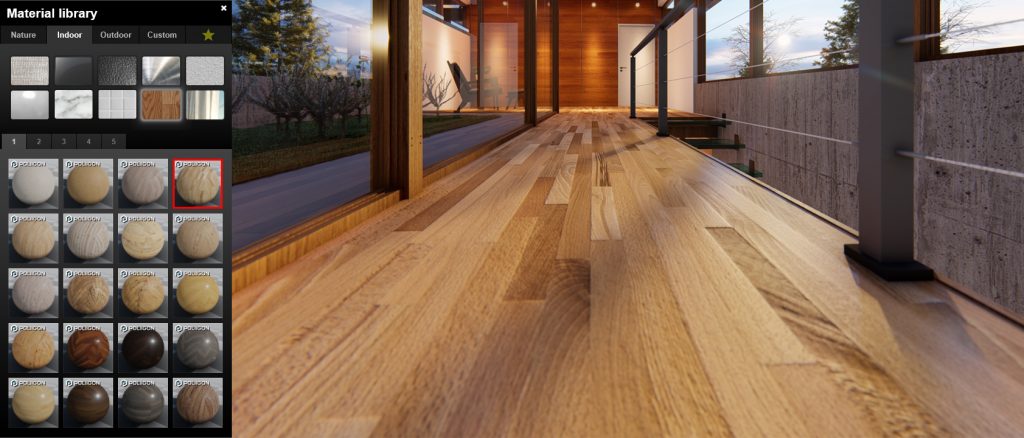 En primer lugar, Lumion 9.5 llega con un amplio rango de materiales de madera para el suelo para interiores y exteriores, entre ellos puedes encontrar 15 de los nuevos suelos de madera en la categoría Interior y uno de los nuevos suelos en la categoría Exterior de la biblioteca de contenido.