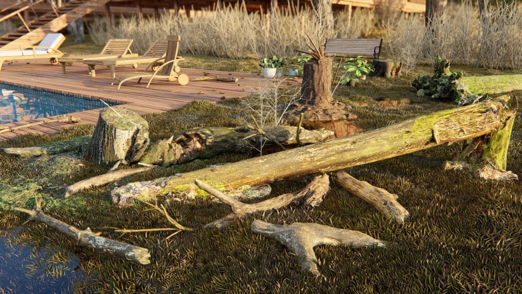 Estos nuevos objetos están localizados en la categoría ‘Madera de bosque’ en la biblioteca de objetos de Naturaleza, y entre los 96 nuevos objetos se encuentran los siguientes: