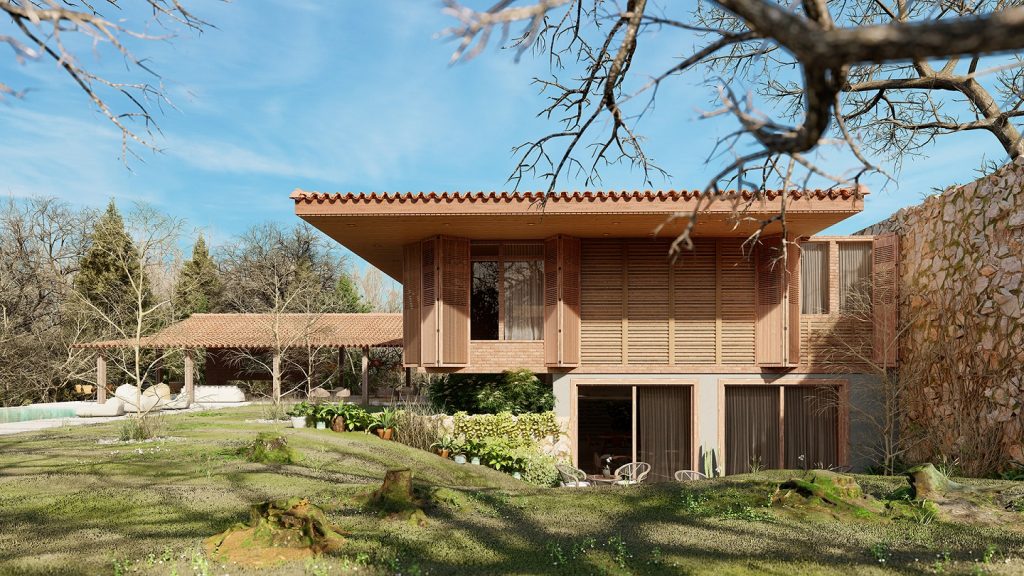 En conclusión, con Lumion 9.5, puedes disfrutar de nuevos árboles y objetos de bosque para incluir un ambiente natural en el diseño. Además, crea un ambiente acogedor con los nuevos materiales de madera y ladrillo.