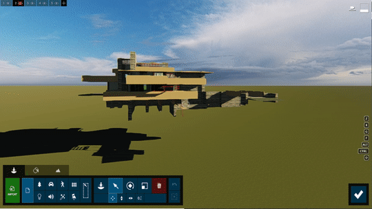 Poniendo estos modelos en capas, puedes controlar cuándo aparecen en el editor. De esa forma, si solo estás trabajando en el edificio, puedes esconder temporalmente la capa con el terreno, de forma que que obtengas un mayor rendimiento trabajando en el edificio. En el GIF que vemos más arriba, podemos observar un aumento en el tamaño del modelo (y los requerimientos del rendimiento de tu hardware) cuando activas la capa que contiene los objetos importados y el terreno.