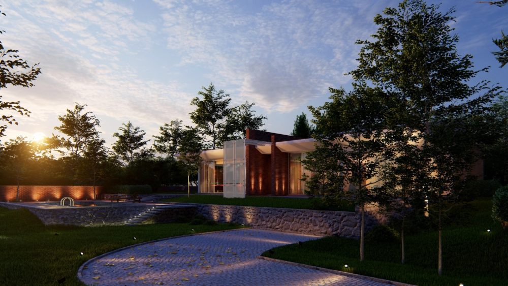 Villa en Casale es otro buen ejemplo de una diseño de vivienda residencial contemporánea rodeado por un entorno natural atractivo. En este proyecto, diseñado por el usuario de Lumion Marco Caccini, puedes aprender sobre los detalles más pequeños que dan vida a una vivienda residencial, como una disposición realista de plantas, arbustos, malas hierbas y árboles.
