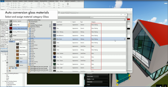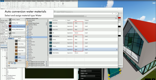 Los materiales agua y vidrio en Revit se convierten automáticamente en PureGlass y en el material realista de agua. Esta conversión automática de materiales solo ocurren el en LiveSync inicial.