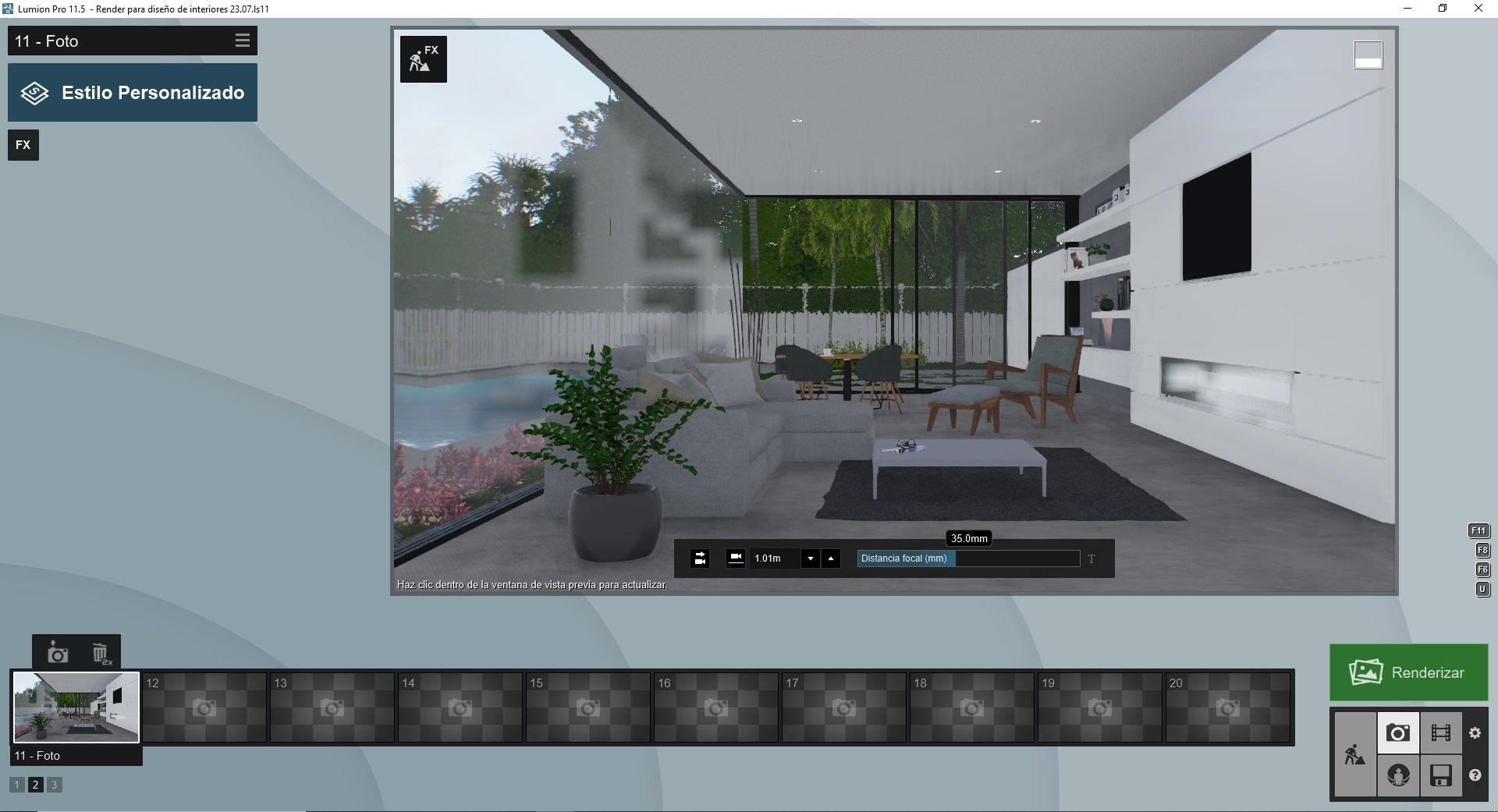 Ahora llega el momento de darle realismo y estilo propio a nuestro render para diseño de interiores.